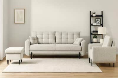 Kolekcja ZOYA to nowoczesne meble tapicerowane osadzone na eleganckich, czarnych metalowych nogach. Łączy wyrazisty design z wysokim komfortem użytkowania, idealnie pasując do nowoczesnych salonów. ZOYA dostępna jest jako sofa oraz zestaw wypoczynkowy 3+2+1. Na specjalne zamówienie kolekcja może być wykonana również w formie narożnika. To propozycja dla osób poszukujących stylowych i funkcjonalnych rozwiązań do wnętrz.