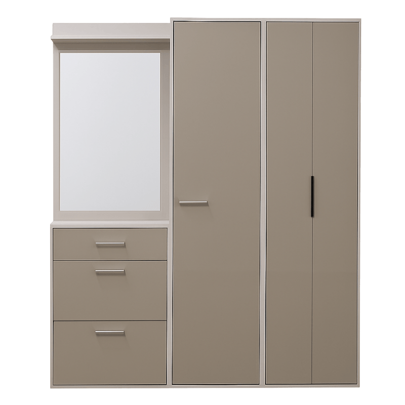 Nasza kolekcja mebli twardych do przedpokoju obejmuje funkcjonalne garderoby oraz szafy na buty, które można zamawiać jako komplet lub osobne moduły. Meble dostępne są w ponad 7 wariantach kolorystycznych, dzięki czemu łatwo dopasować je do każdego wnętrza. Uniwersalna konstrukcja sprawia, że doskonale sprawdzają się zarówno w domach, jak i mieszkaniach. Kolekcja łączy nowoczesny design z praktycznymi rozwiązaniami do codziennego użytkowania. To idealny wybór dla osób poszukujących estetycznych i trwałych garderób oraz szaf na buty do domu